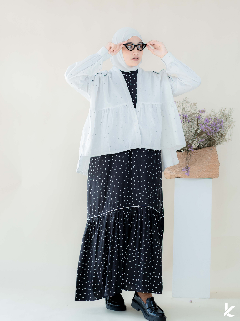 This collection features a delicate inner dress paired with a stylish outer top (sold separately). The inner dress is designed with a flattering A-line silhouette, allowing for comfortable movement while maintaining a chic appearance. The outer top complements this with a relaxed fit. Adding a contemporary twist to the classic style.